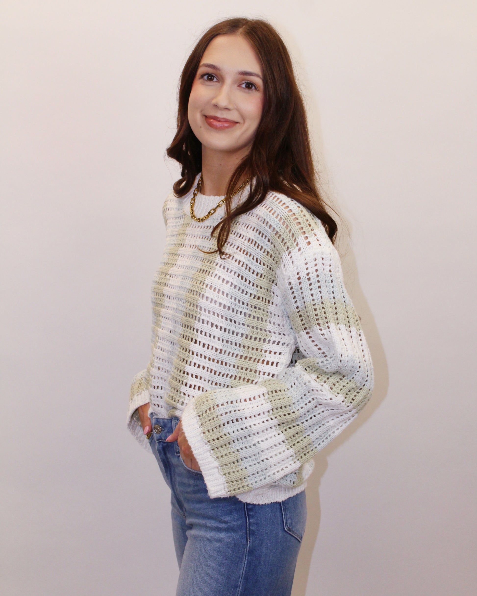 The Natalie Crew Neck Stripe Sweater is your go-to layer for effortless style. Throw it on with linen pants for a breezy spring getaway, or pair it with denim shorts when you're craving cozy comfort. Versatile, easy, and always a win.