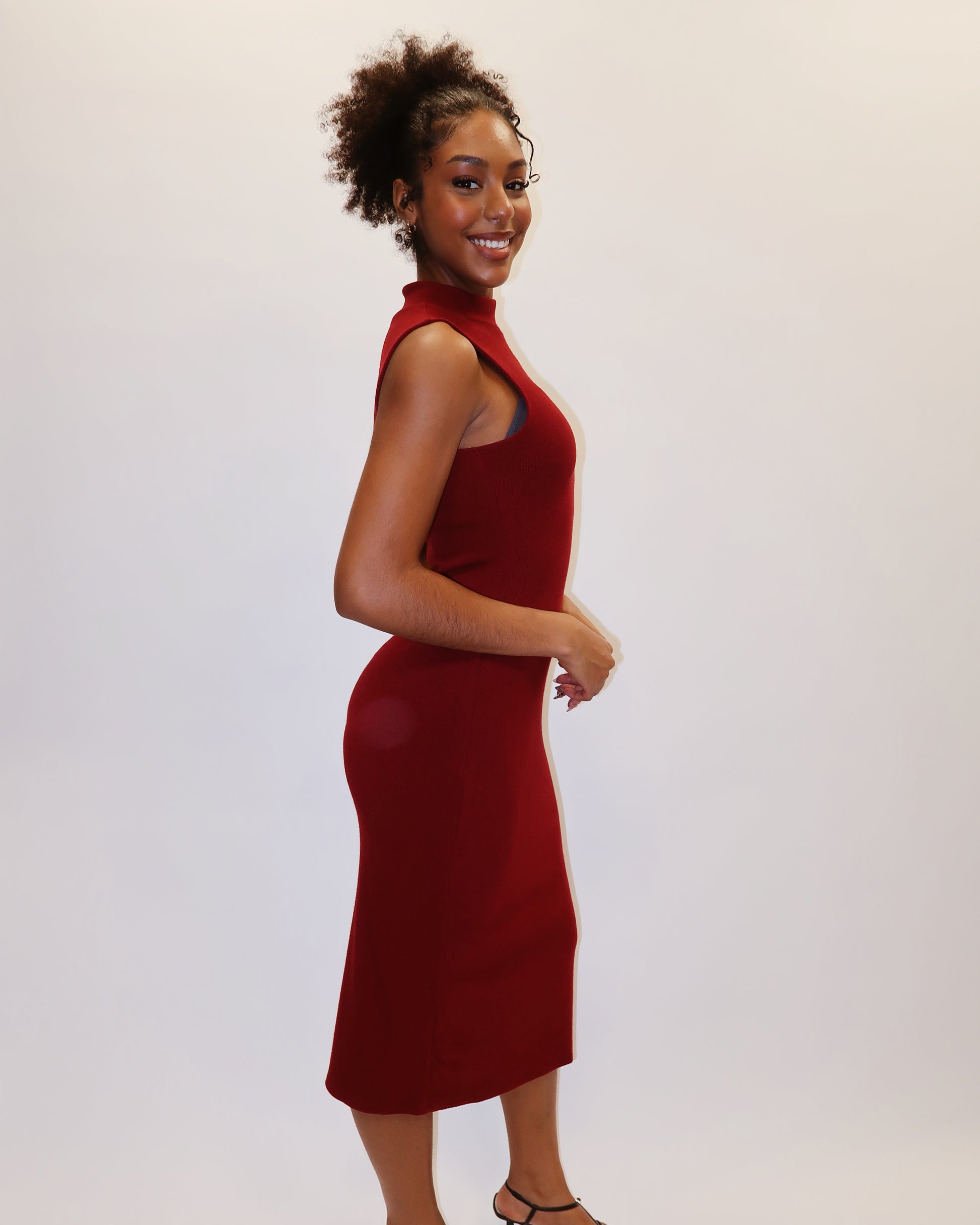 Introducing the Chloe Mock Neck Midi Dress - the perfect dress for any occasion. Dress it up with heels or keep it casual with a jacket. Versatile and stylish, this dress is a must-have for any wardrobe.