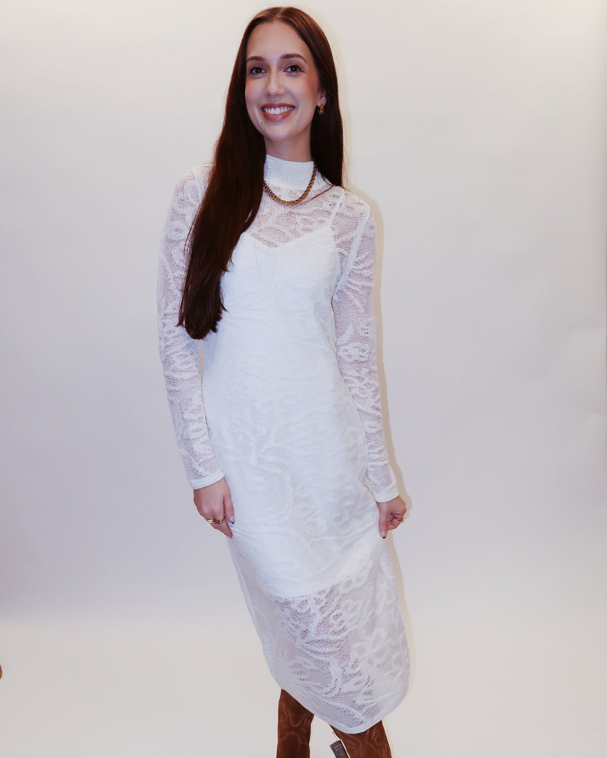 The Illie Midi Dress is your go-to white piece for effortless elegance. Pair it with heels for a polished evening vibe or slip on booties for a more relaxed-yet-refined look. Versatile, timeless, and ready for whatever your day (or night) calls for.