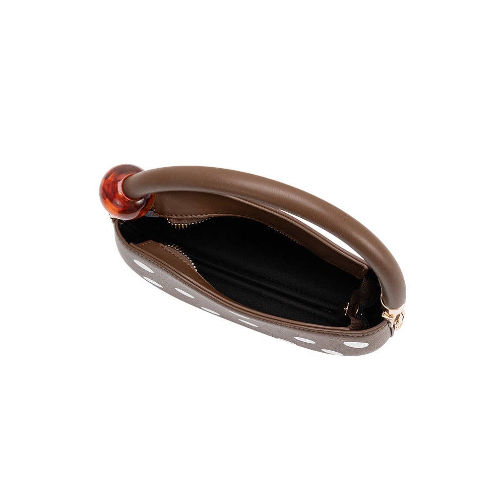 Jennie Chocolate Recycled Vegan Polka Dot Top Handle Bag