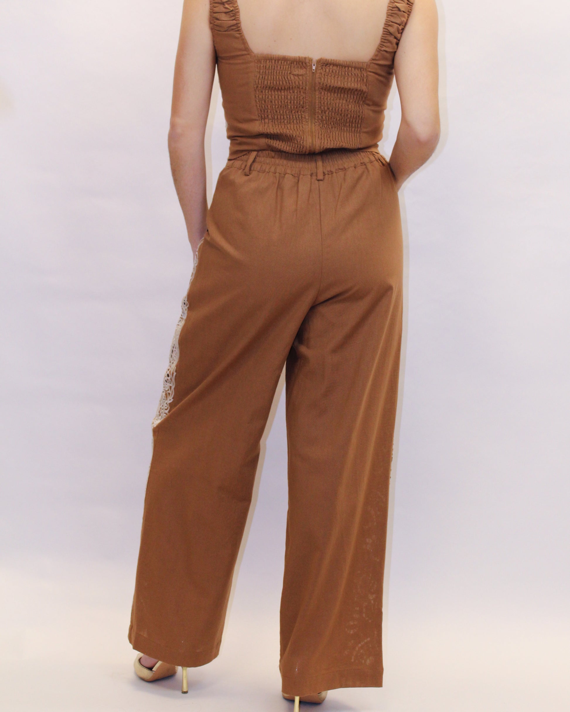 Escape into spring style with the Loren Embroidered Pants—your new vacation essential. Featuring a charming scalloped waistline and intricate embroidered side panels, these pants deliver effortless elegance for getaways and everyday adventures. Pair them with heels for a polished look, or style with our matching top for an instantly coordinated, picture-perfect outfit. Comfortable enough for travel, chic enough to turn heads.