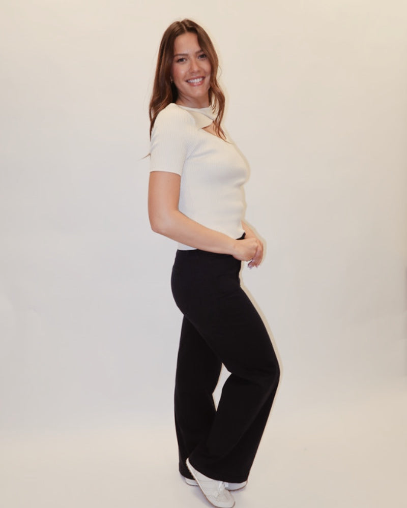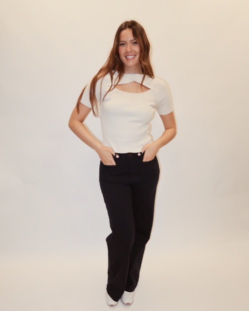 The Marnie Sweater Top is your new wardrobe essential—versatile, effortless, and endlessly stylish. Layer it with leather pants for an edgy vibe or throw it over denim for casual comfort. Here's the fun part: flip it reversible-side out and rock the cross detail on the front for a playful twist. One top, infinite looks. Perfect for those days when you want to feel put-together without overthinking it.