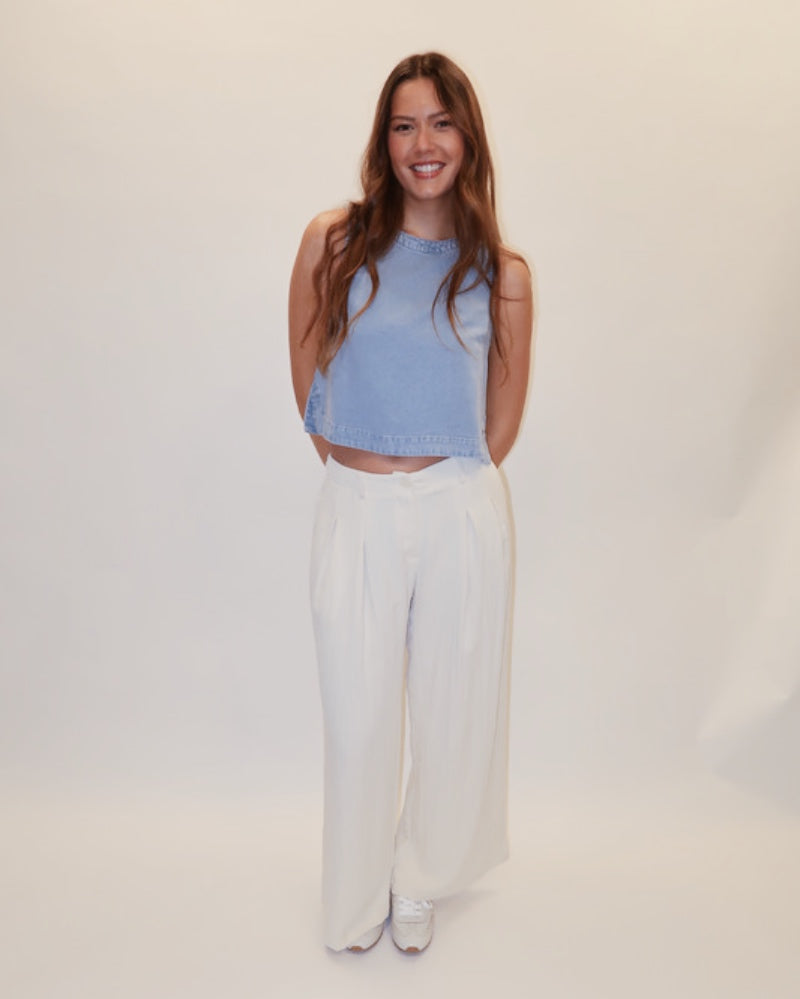 Effortlessly chic and endlessly versatile, the Serena Sleeveless Blouse is your go-to layering piece for any occasion. Pair it with crisp white denim, tailored trousers, or your favorite skirt for a polished look that feels relaxed and put-together. Whether you're heading to brunch, the office, or weekend adventures, this sleeveless essential transitions seamlessly from season to season.